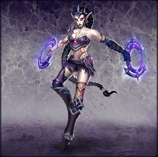 Ловчий — это типичный тёмный эльф, чья речь мягка, словно шёлк с лёгким ароматом яда. Ловчие бесстрашны и яростны, склонны не к долгим разговорам, а к быстрым действиям. Под землёй на поле боя слишком мало места для традиционных эльфийских луков, и потому тёмные эльфы изобрели новое оружие, специально предназначенное для боя в туннелях: чакру. Этот экзотический метательный диск смертоносен на малых расстояниях и способен одним броском поразить несколько целей.