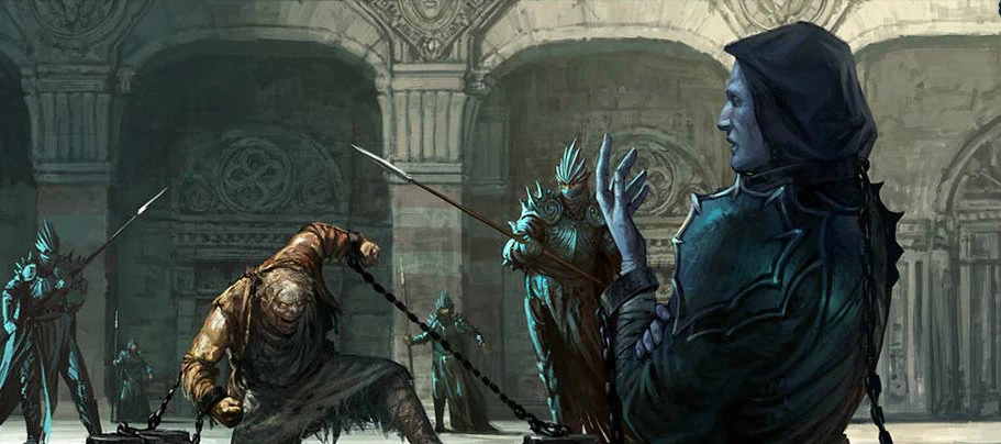 After a half-ghoul and a person, who both claim to be Yorath Al-Behkir, have traded insults, everyone is worried, for this could compromise the negotiations. The hero has to speak with every person, see what they think. The hero soon learns Tarek wanted to sabotage the negotiations, so a false negotiator was sent, since the attempts to kill Albin failed. The ghoul claims to be the real Yorath, since he knows in which tavern he and Albin last played a game of dice. The other Yorath asks the hero do they expect to believe he'll say he's the imposter around.