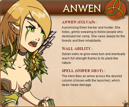 Anwen is a hero of Sylvan faction in Might & Magic: Clash of Heroes.