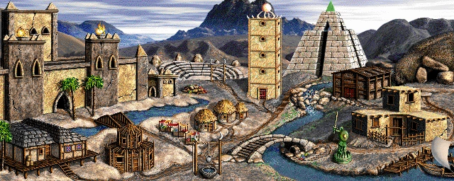 | The Marketplace can be used to convert one type of resource into another. The more marketplaces you control, the better the exchange rate. | The Thieves' Guild provides information on enemy players. Thieves' Guilds can also provide scouting information on enemy towns. Additional Guilds provide more information. | The Shipyard allows ships to be built. | The Garbage Heap increases production of goblins by 8 per week. | The Coliseum provides inspiring spectacles to defending troops, raising their morale by two during combat. |