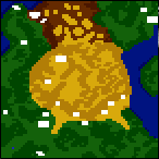 The kingdom of Jarkonas has a single barbarian hero with a few knight creatures in the southwestern corner. By capturing the nearby neutral warlock town, it's possible to build up and hire creatures.