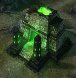 The hero can choose to fight a group of 50 undead units (2x10 vampire lords in slots 1 and 5, and 3x10 royal mummies in slots 2, 3, and 4) for the reward of level five spell. Requires the Magic Book and Expert Wisdom to learn the spell. If the hero cannot learn the spell, it will simply disappear. After reward is received, all the subsequent visits will grant -2 luck to any hero until the end of the next battle. |