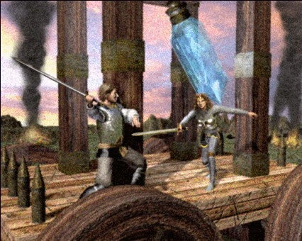 Emilia confronts Magnus at the Battle of Arcania in Heroes IV.