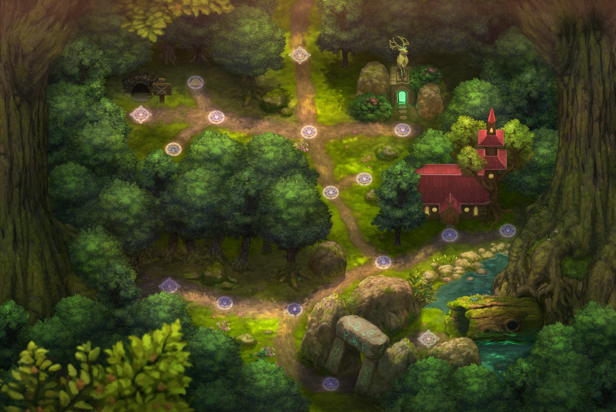 | Irollan (The Deep Forest - Hunter's lodge - Druid tree - Forest's edge) |