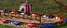 | The Marketplace can be used to convert one type of resource into another. The more marketplaces you control, the better the exchange rate. | The Thieves' Guild provides information on enemy players. Thieves' Guilds can also provide scouting information on enemy towns. Additional Guilds provide more information. | The Shipyard allows ships to be built. | The Farm increases production of peasants by 8 per week. | The Fortifications increase the toughness of the walls, increasing the number of turns it takes to knock them down. |
