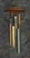 A set of wind chimes made of brass with copper chains. Etched along the surface of the chimes are symbols of Baa.