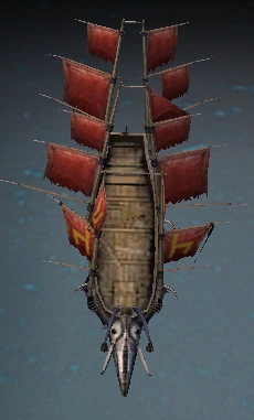 So badly aged is this ship that it is difficult to tell what it once was, perhaps it most resembles a galleon. This beaten and weathered ship may hold something of value, but be ready to fight with the guards.