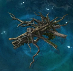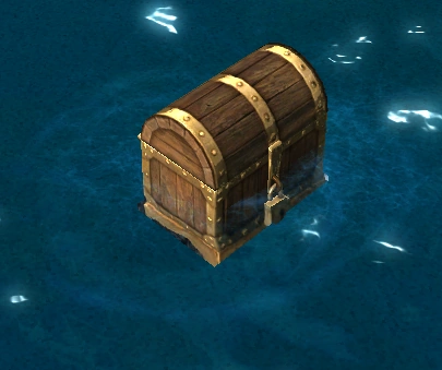 Perhaps the remnants of a shipwreck or the evidence of battles in the deeps, one sometimes finds useful bits of wreckage on the sea.OffBck (Note: Gives random amount of gold and other resources, rarely artifacts) |