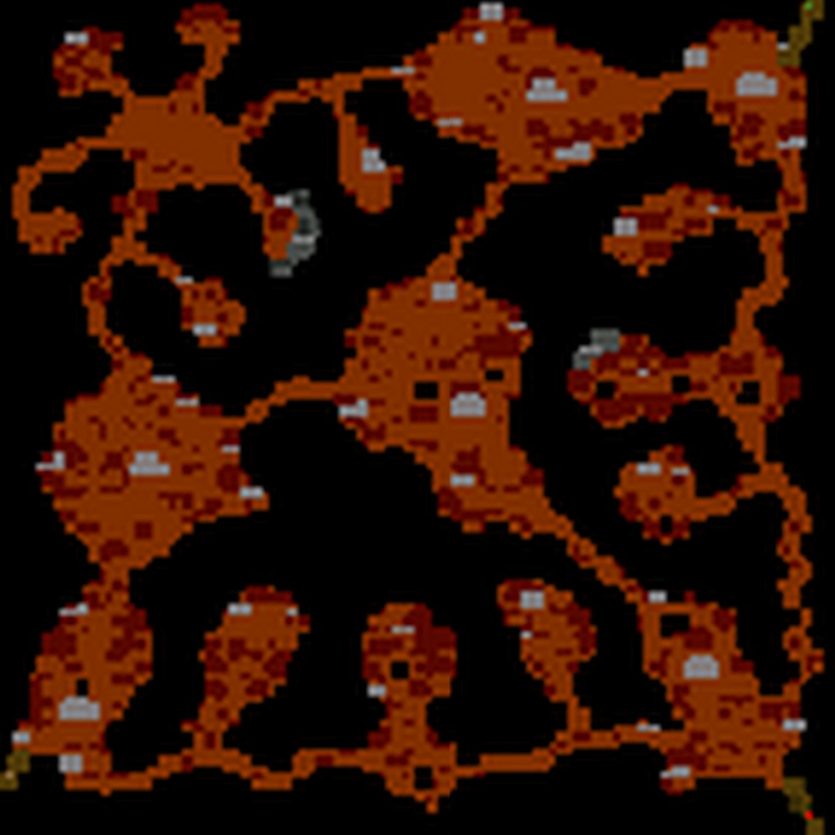 Though each faction starts without towns, Lorelei and Deemer have two towns closer than Mutare, whose second town (No Quarter) lies in the center of the map. When the town of Gloom Cave is captured, Mutare should recruit additional hero(es) to search through the lands and guard towns, for it is likely for the enemy to send skirmishes. In addition, there are brown monoliths around No Quarter, Red Spider and Gruen Point, which link to northwestern part of the map, where the Dragon Utopia and the Pyramid are held. Close to them is the red monolith, which can transport heroes either to south or east, halfway from Gloom Cave to Dank Rock or Fetid Cavern.