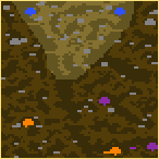 Crag Hack and Yog start in the north with two Strongholds. The purple Necromancers have one Necropolis in the center and one in the southeast, while the orange Necromancers have one in the southwest and one in the southeast. They also have two high-level heroes each. There are two neutral Necropolises, one in the northwest and one in the northeast.