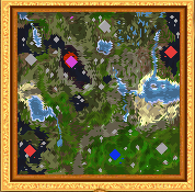 The two neutral towns near the purple town are both Asylums. East of the eastern one is a quest hut providing access to the blue Keymaster's Tent for eight earth elementals. West of the same town, a quest hut is willing to give 5000 gold, 10 gems, and 10 sulfur, for 50 orcs. Next to it is a tunnel, leading to a small underground with two Altars of Earth, providing Earth Elementals.
