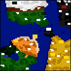 The player starts with a single wizard castle in the southwestern corner. On the east side of the player's castle, there is a prison containing the high-level wizard Joseph locked inside with an aqua barrier protecting the prison. The barrier can be opened by visiting the aqua-colored traveller's tent, north of the starting castle. The player should free the hero as soon as possible, but should watch out for the enemy wizard hero lurking in the east. On the northern side of the same island is a yellow wizard castle and a town. By heading through the portal east of the starting castle, they can reach the yellow player's desert island to the east, with two necromancer castles and a castle of a random faction.