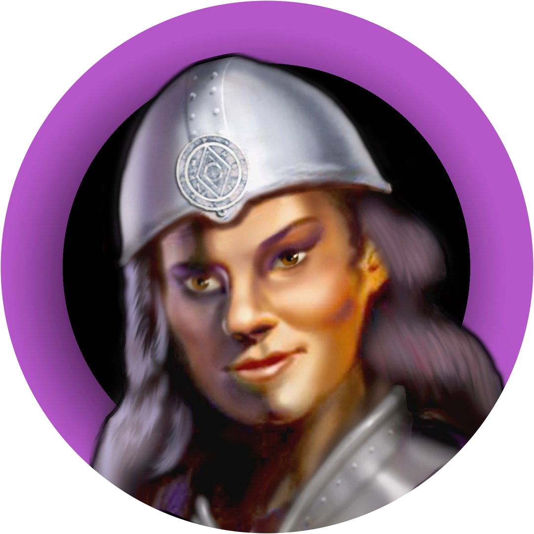 Verdish nearly perished when a dragon attacked her village. Fortunately, a great healer cured her injuries. Later, that dreadful experience prompted her to become a knight so she could learn to protect herself. Still, she is plagued by nightmares of that fateful day, and remains obsessively conscious of the scars beneath her armor.OffBck